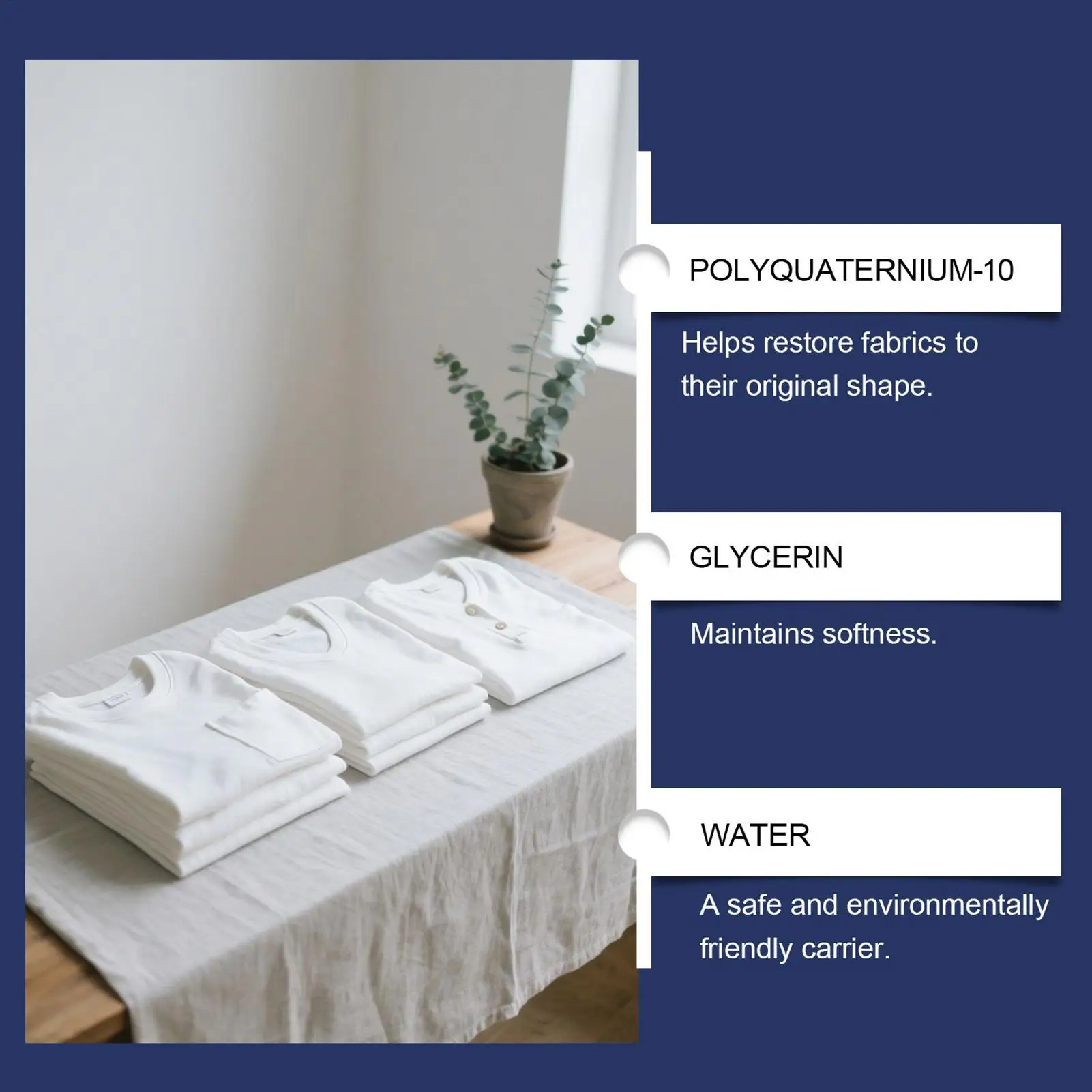4.Non-Irritating Ingredient: Formulated to be fabric safe and effective on all materials, without leaving stains or harming colors, assuring gentle care during ironing