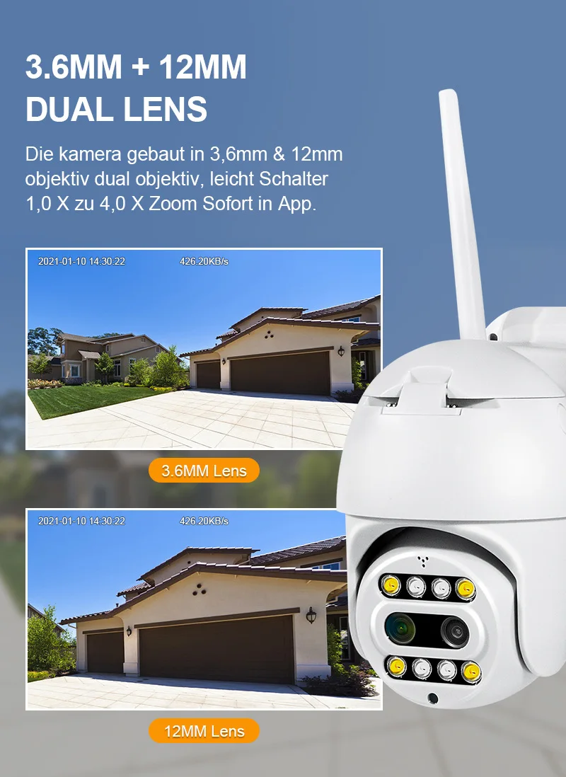 2021 New Arrival 10X Zoom Carecam Pro Dual Lens Night Vision Outdoor Wireless Security WiFi CCTV PTZ IP Camera