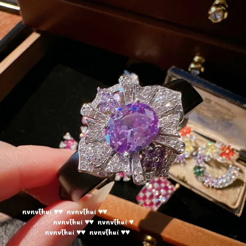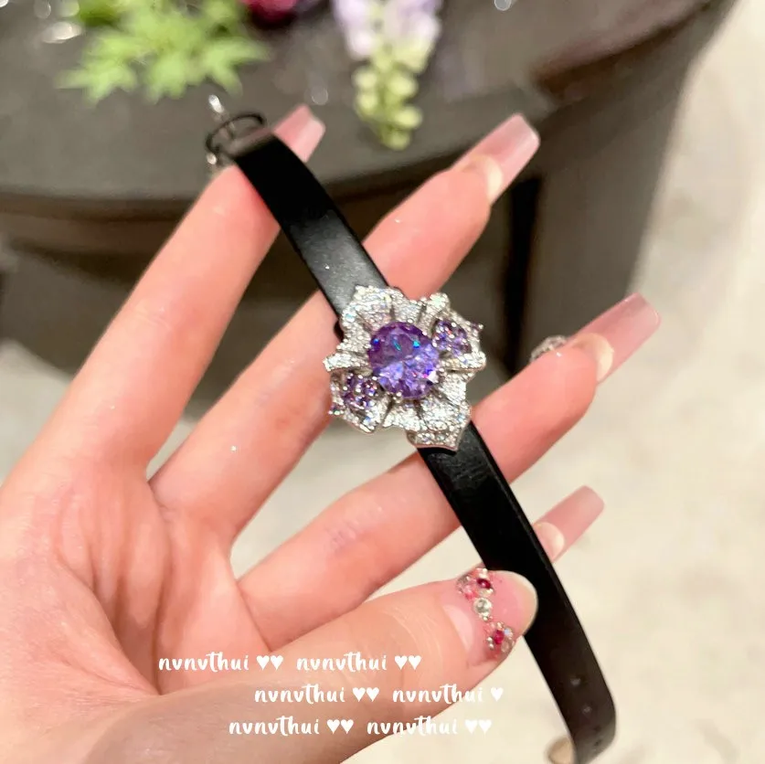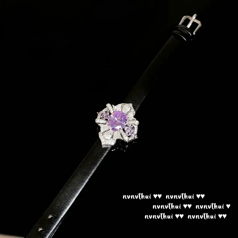 2024 New Fashion Amethyst Bracelet with PU Wrist Strap Elegant Platinum Plating Luxury Diamond Bracelet Bangles Vintage Jewelry