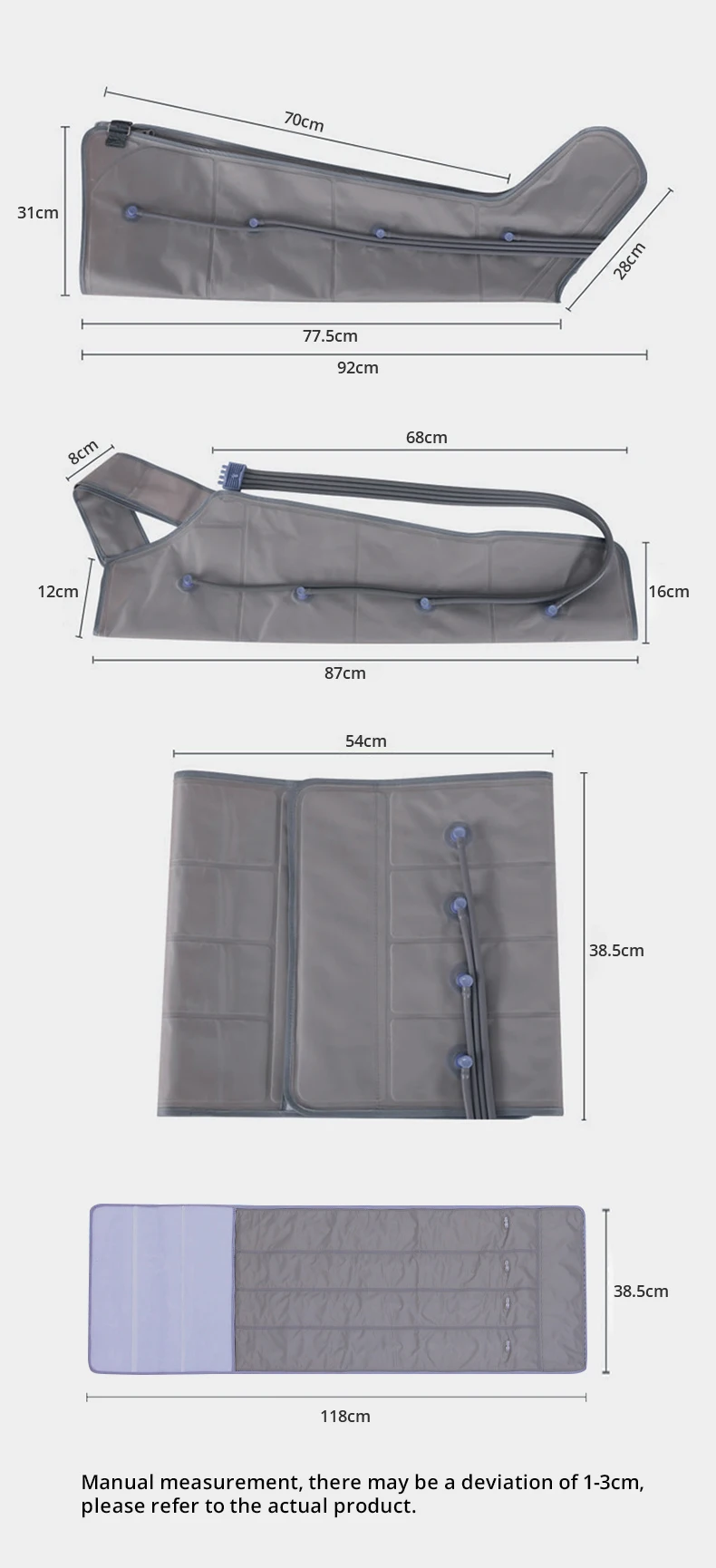 We can provide you with extended belts for the waist and legs, which can help to expand the waist circumference by about 30 cm and the leg circumference by 6 to 10 cm.