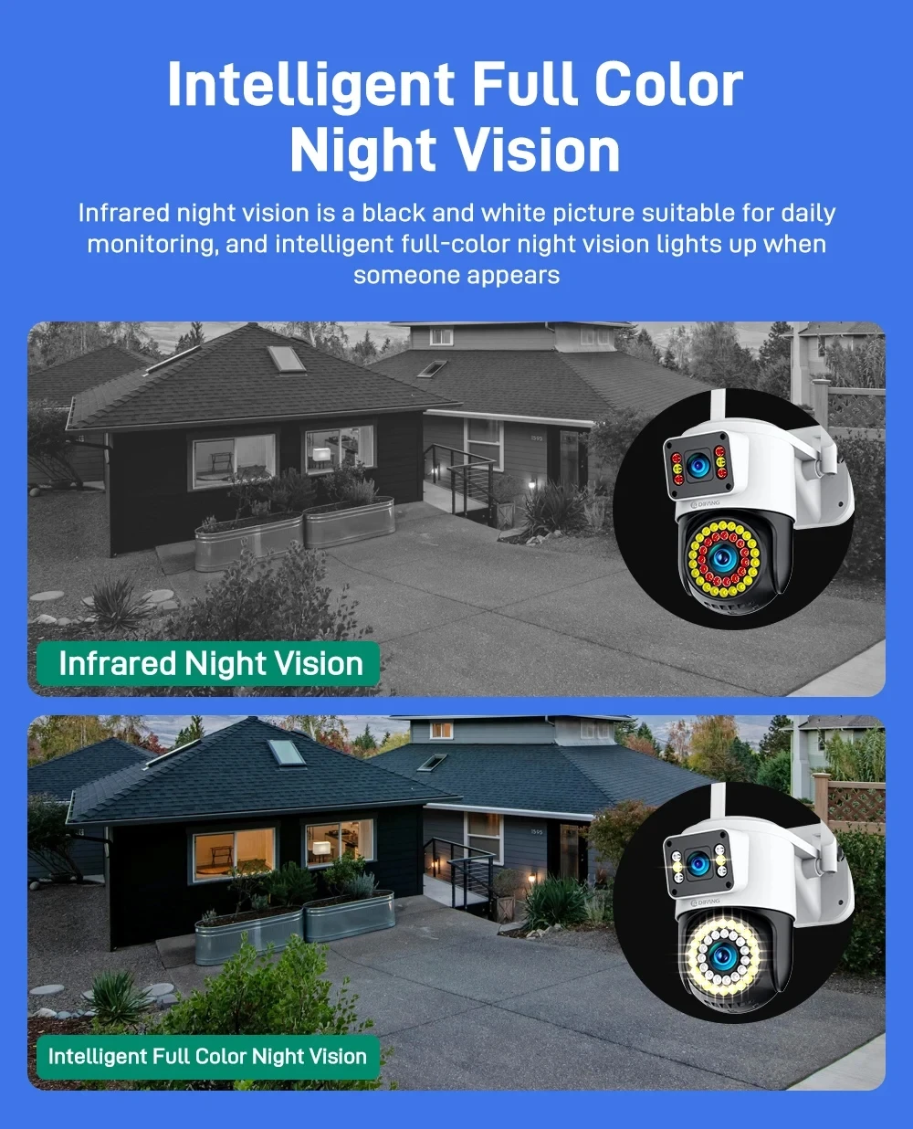 --Enjoy the flexibility of choosing between two night vision capabilities based on your needs – whether it's color detail or extended range – for a tailored and effective monitoring solution.