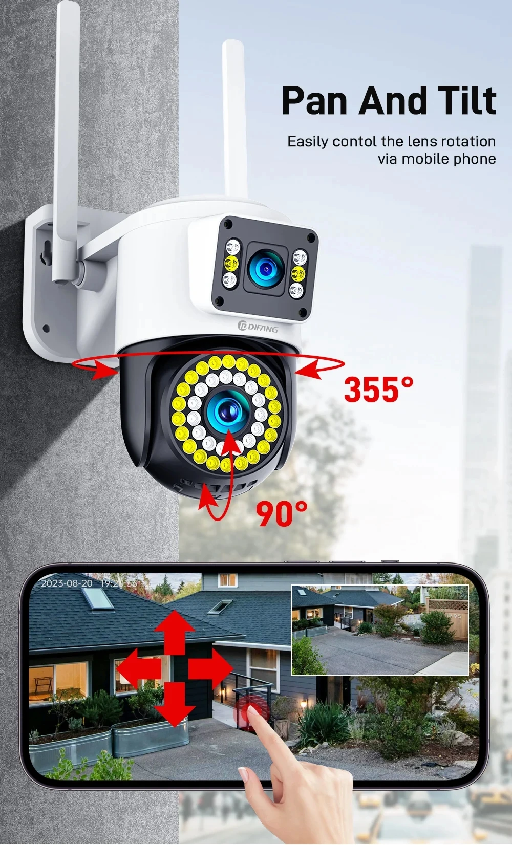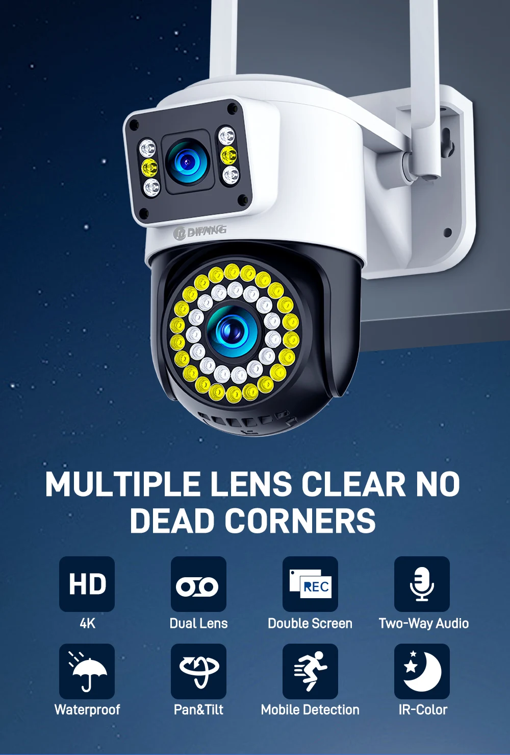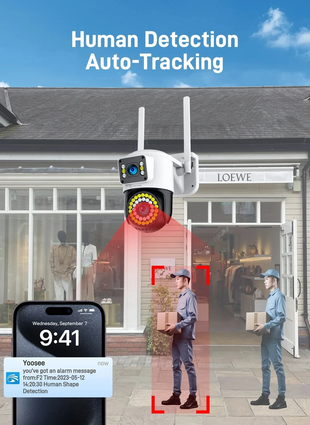 Yoosee 4K 8MP WiFi Camera Outdoor Dual Lens Dual Screen CCTV Security Protection Auto Tracking Street Cam Surveillance