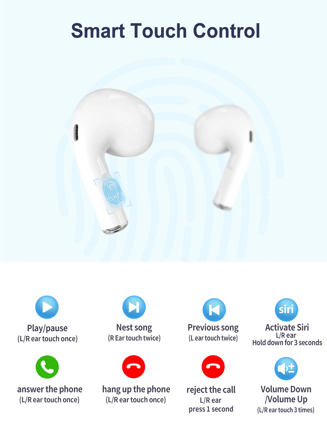 Multi-function touch panel on each earphone helps to play, pause, adjust volume, answer, end calls, activate siri and google assistant more convenient.