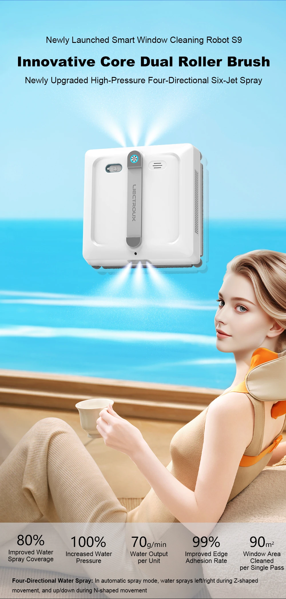 Automatic Window Cleaner S9 with 9K Pa Strong Suction, Safety Rope, Suitable for Home Use