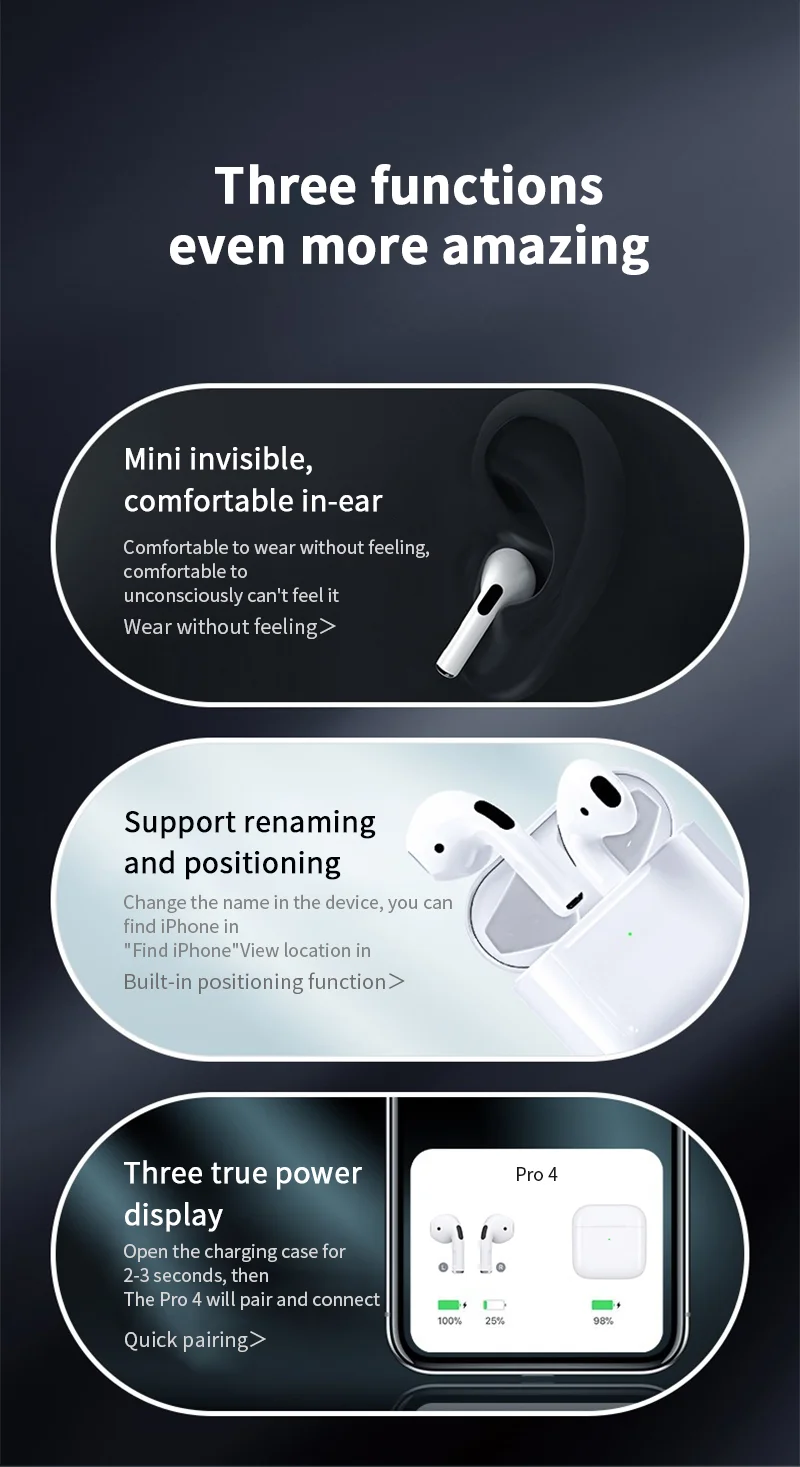 Choice Airs Pro Wireless Earbuds Bluetooth Headphones TWS Earbuds Waterproof Location Tracking Touch Controls Compatible for iOS
