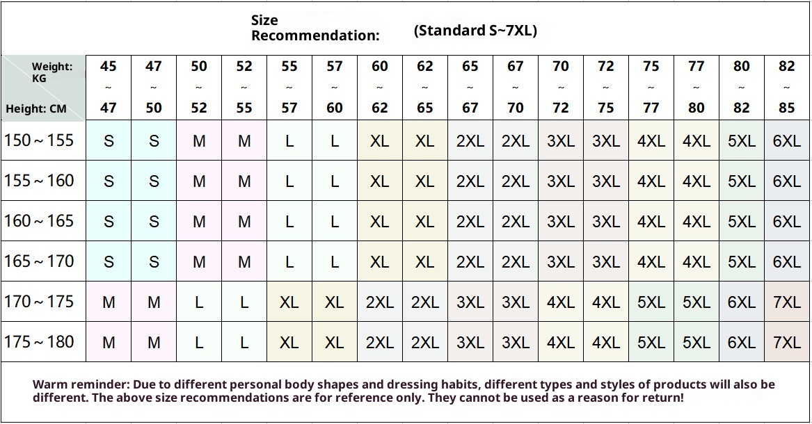 1. Asian sizes are 1 to 2 sizes smaller than European and American people. Choose the larger size if your size between two sizes. Please allow 2-3cm differences due to manual measurement. 2. Please check the size chart carefully before you buy the item, if you don't know how to choose size, please contact our customer service. 3.As you know, the different computers display colors differently, the color of the actual item may vary slightly from the following images.