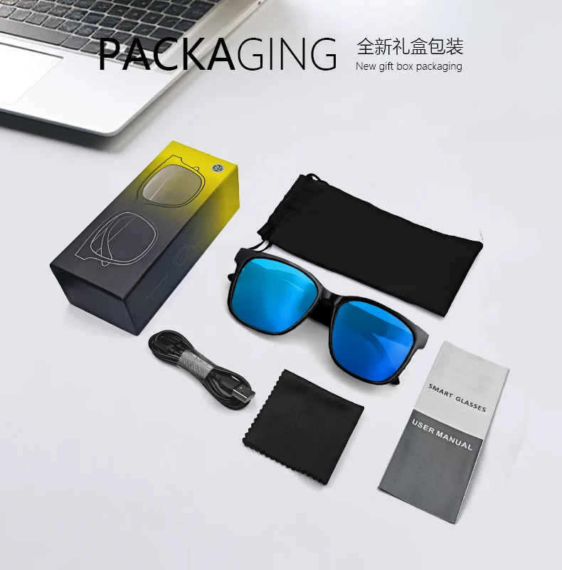 Packing:Smart Glasses charging cable, storage pouch, cleaning cloth, user manual, packaging box