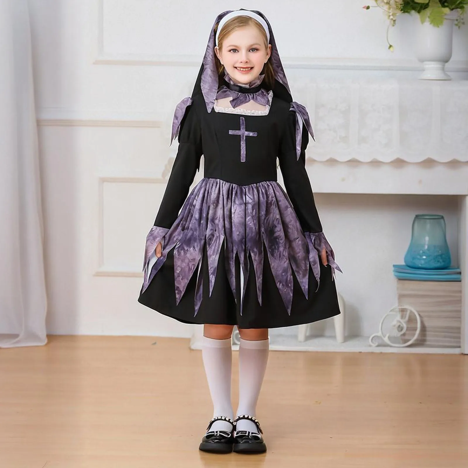 Halloween Children's Costume Sweet Cute Nun Carnival Party Girls Priest Cross Maria Dress Sister Parent-child Costume