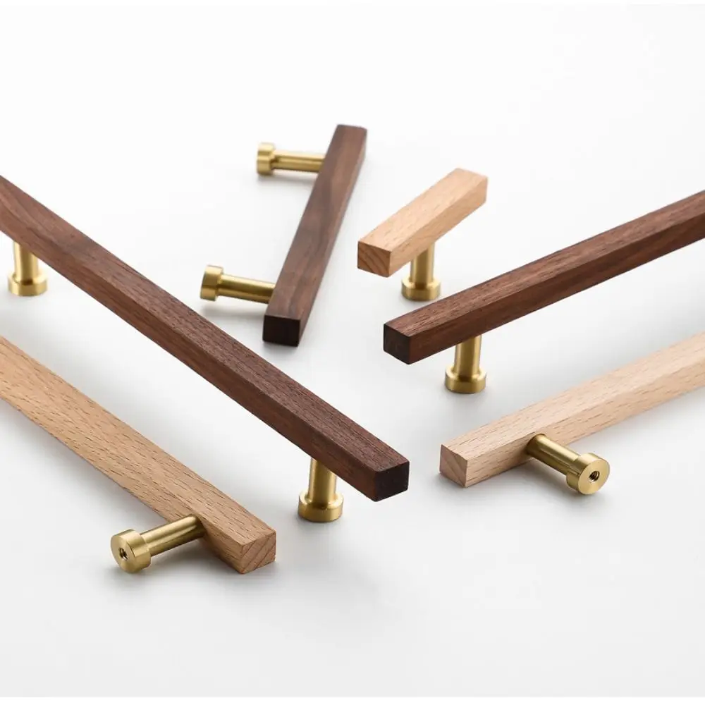 High-End Walnut Wood Wood Cabinet Handles Luxury Design Modern Drawer Pulls Minimalist Beech Wood Wooden Handles Kitchen