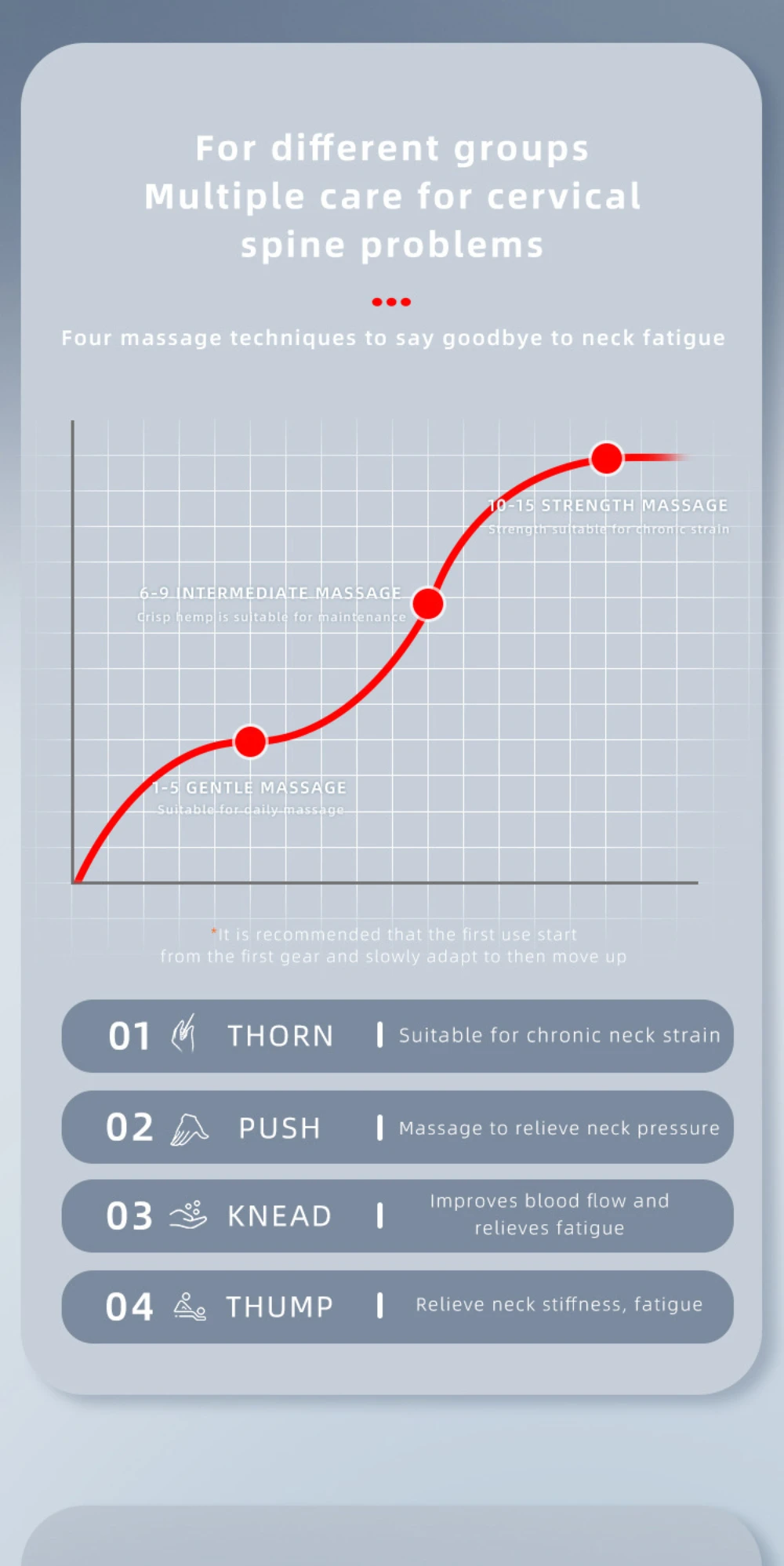 1. It uses TENS low-frequency pulse technology to knead the neck, deeply massage muscles, relax stiff muscles, and effectively relieve cervical pressure.