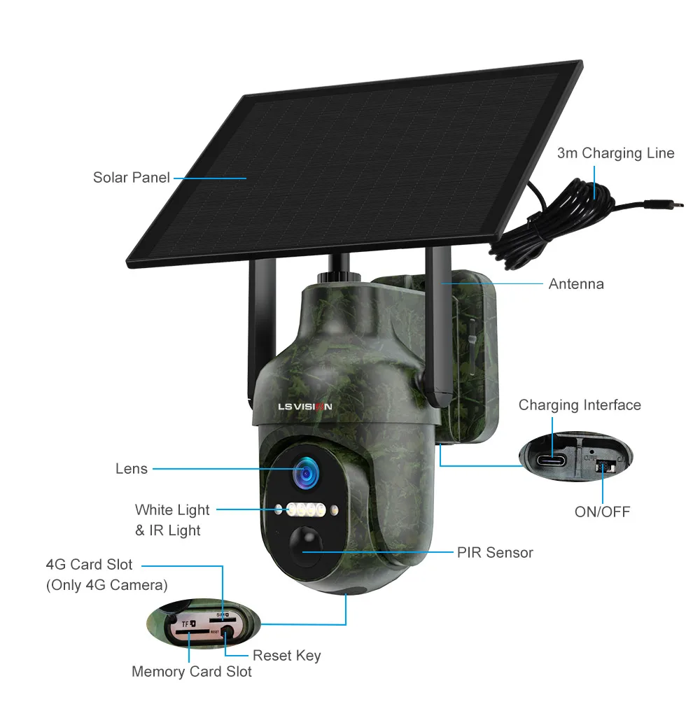 LS VISION Ubox APP 4MP 4G LTE Solar Trail Camera Wireless Outdoor Surveillance Camera WiFi Security Cameras PIR Human Detection Automatic Tracking CCTV Camera