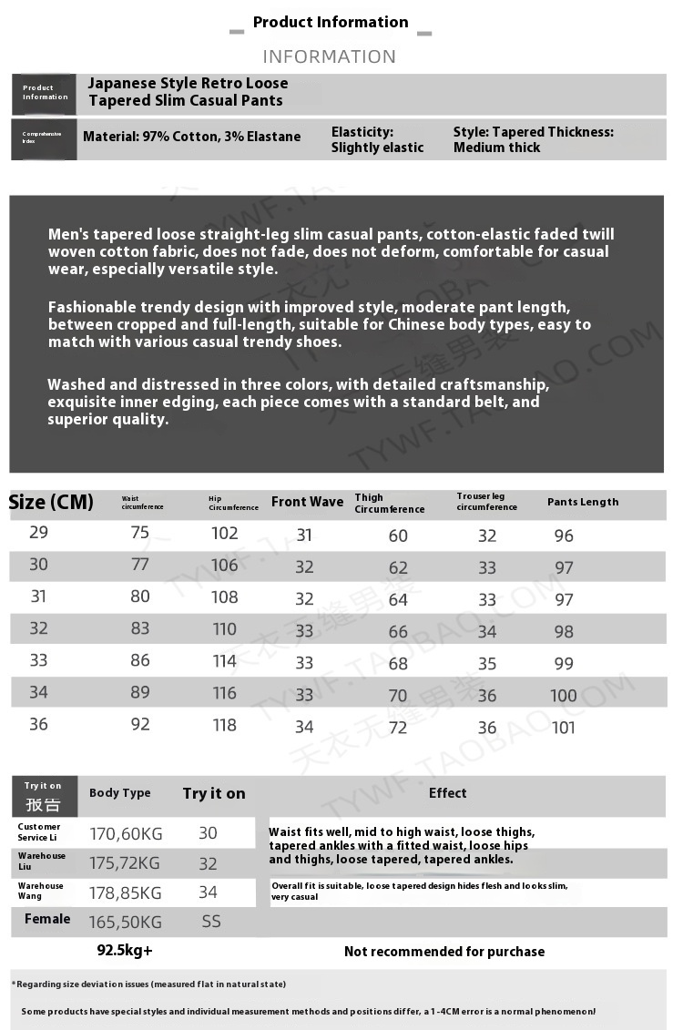 Size: 29, 30, 31, 32, 33, 34, 36, 38 96cm waist 95.00kg,40 102cm waist 102.50kg,42 106cm waist 110.00kg,44 113cm waist 120.00kg