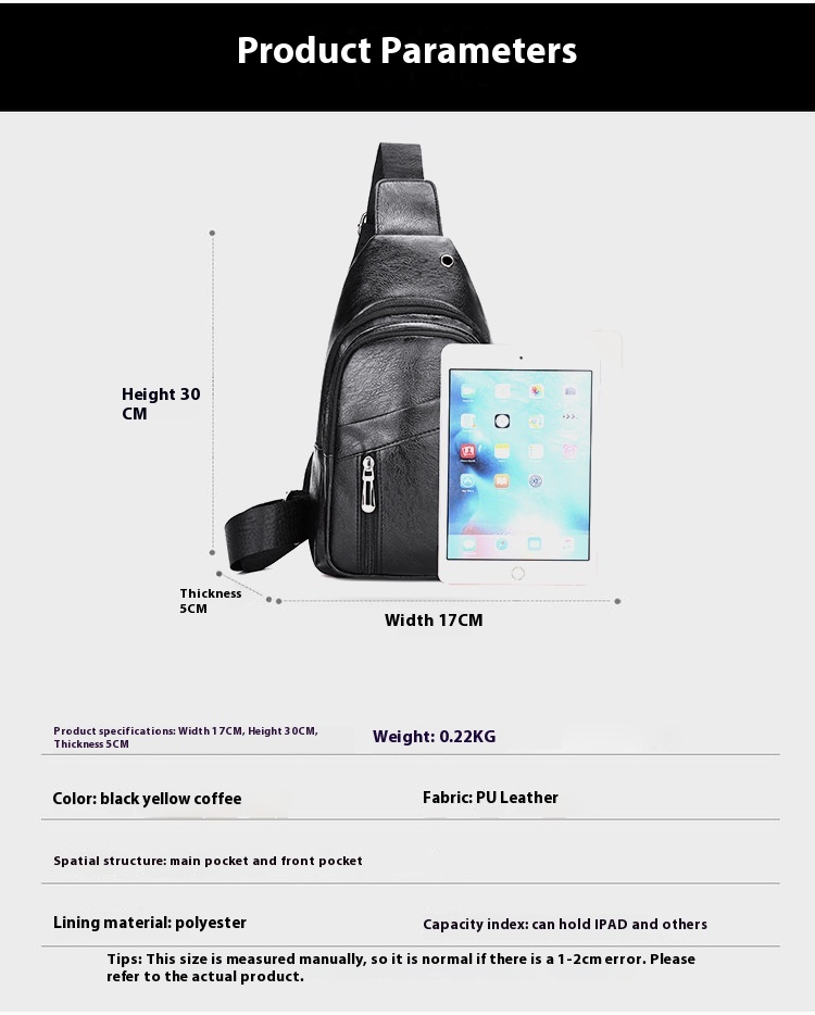 Men's Multi-layer Large Capacity Waterproof Pu Crossbody Shoulder Bag