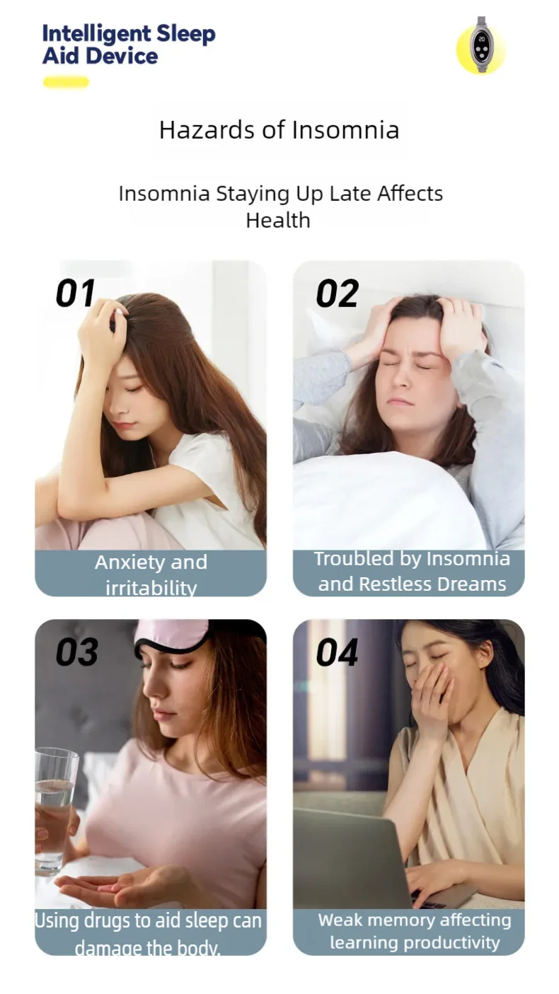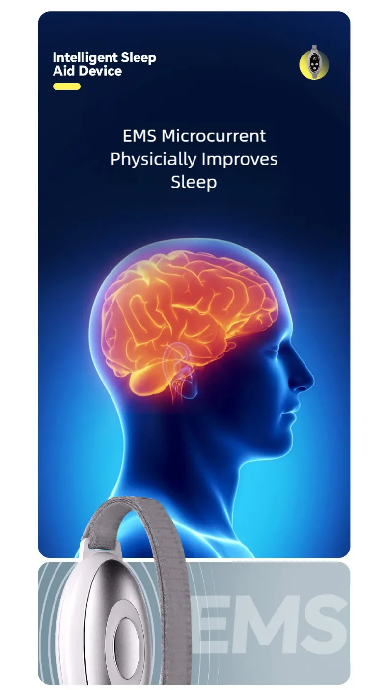 【Physically Improve Sleep】 Utilizing microcurrent technology to stimulate neurotransmitters in the cerebral cortex, it helps regulate emotions, stress, and promote a calming and restful sleep experience. Safe and effective.