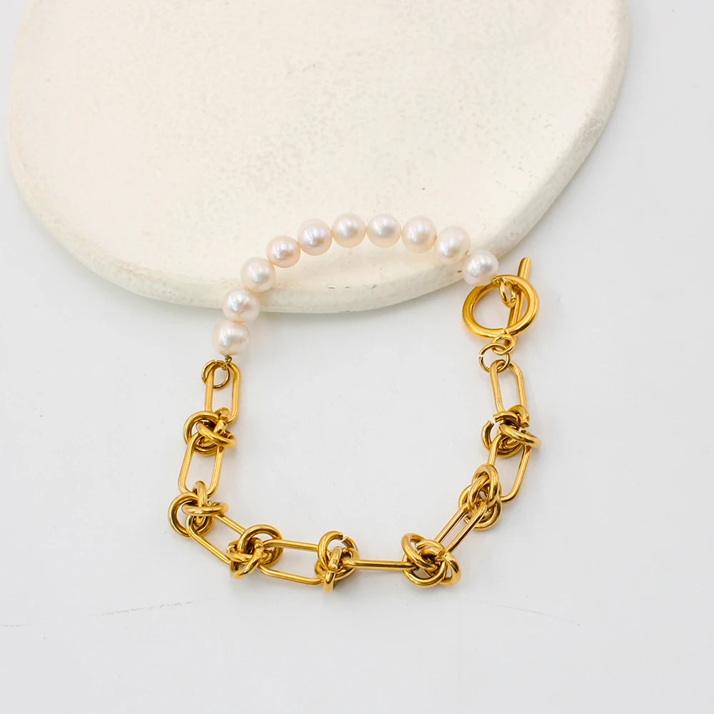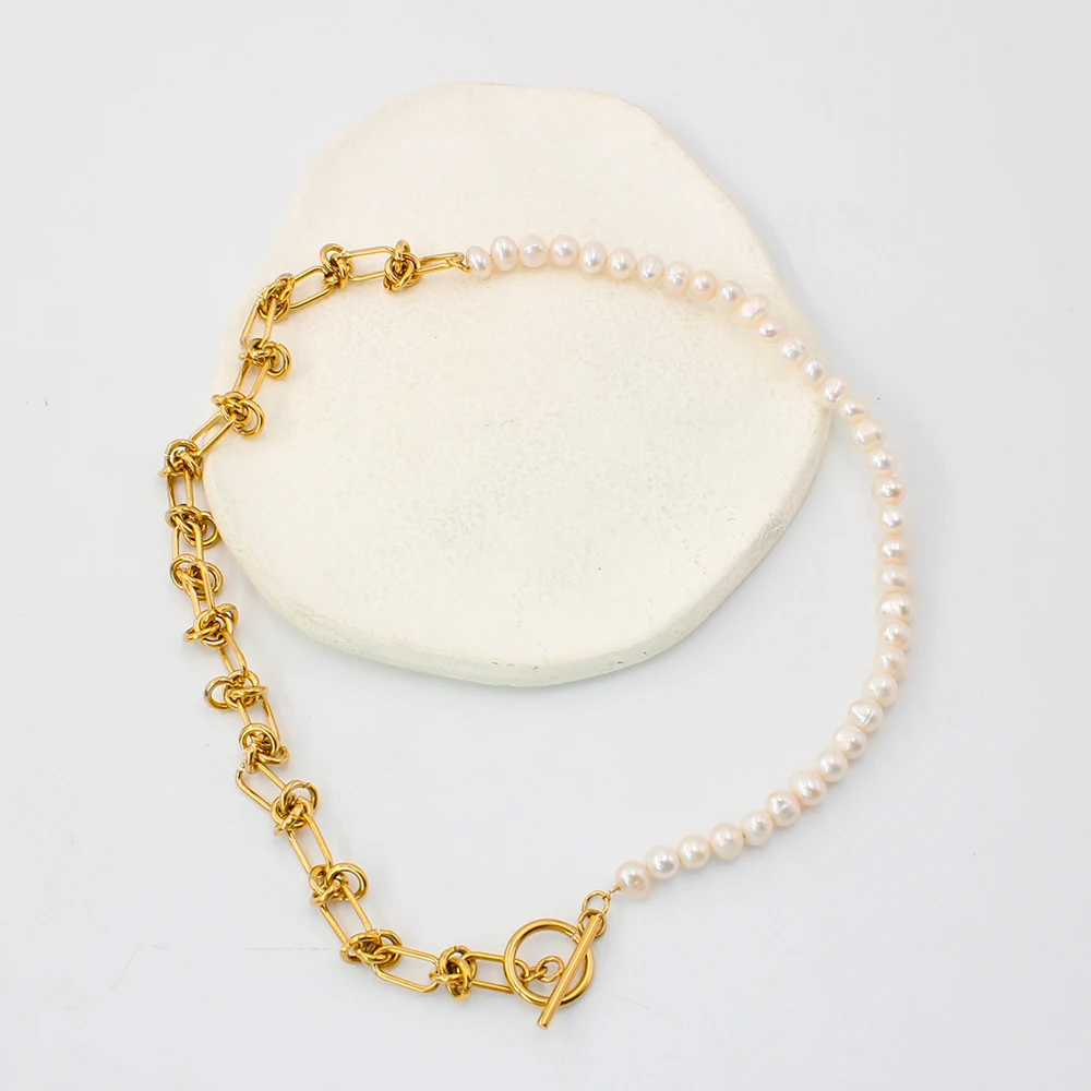 New Fashion Half Pearl Half Link Chain Necklace Bracelet Women Aestethic Luxurious Jewelry Gift