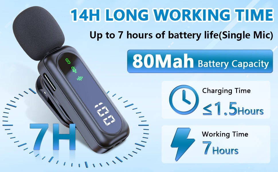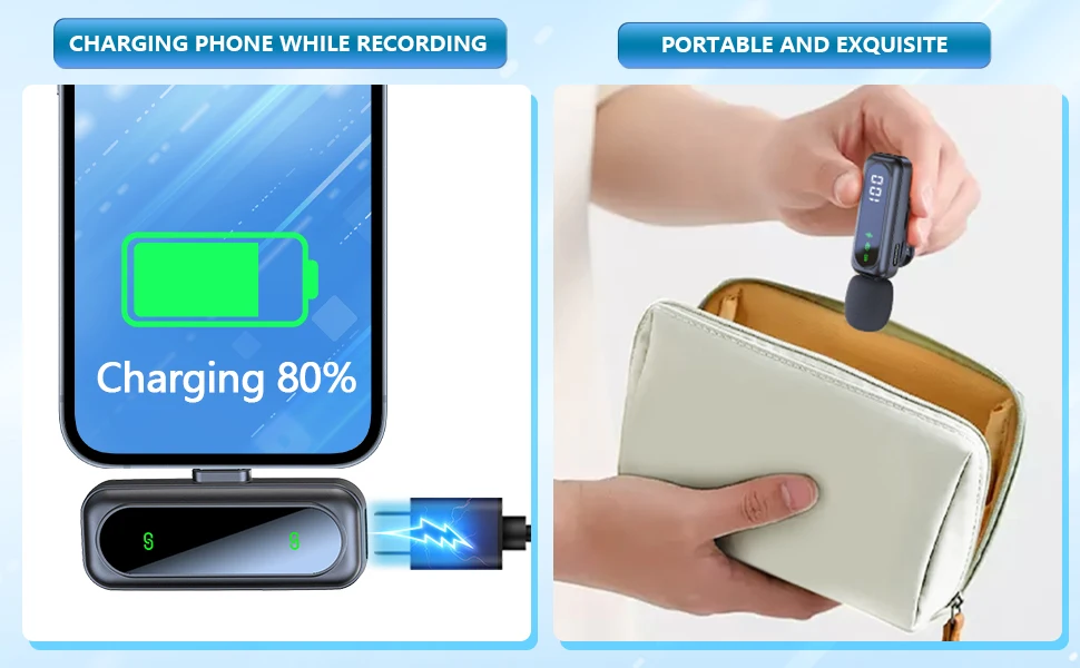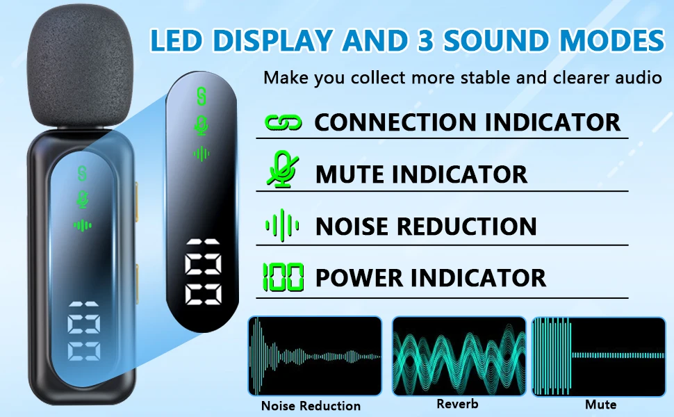 【Superior Sound with Active Denoise】- Experience exceptional sound clarity with the USB C wireless lavalier mic featuring advanced active denoise technology. With dual noise reduction modes – noise reduction mode and original sound mode.