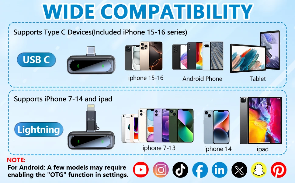 【Plug and Play】- Just plug the connector adapter into iPhone iPad or Android devices, and clip the lavalier mic onto shirt, it automatically connect to your device and start working within 1 seconds. Two pack mini microphones, means two people can get involved in a video recording together. Suits for Youtube, Video, live streaming, Podcast, Blog, Vlog, Zoom, Interview, Online Meeting, Online Education, TikTok and Singing recording ect.