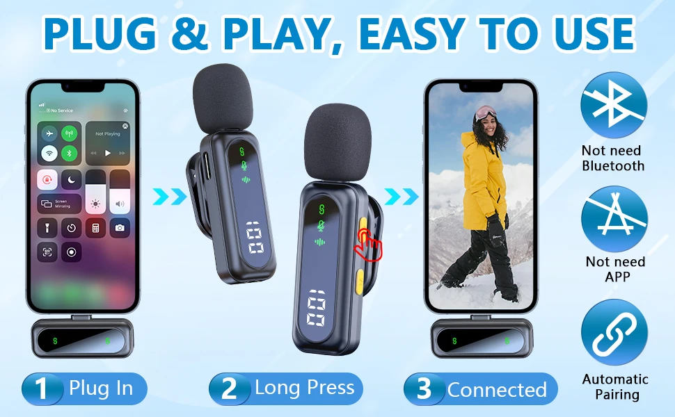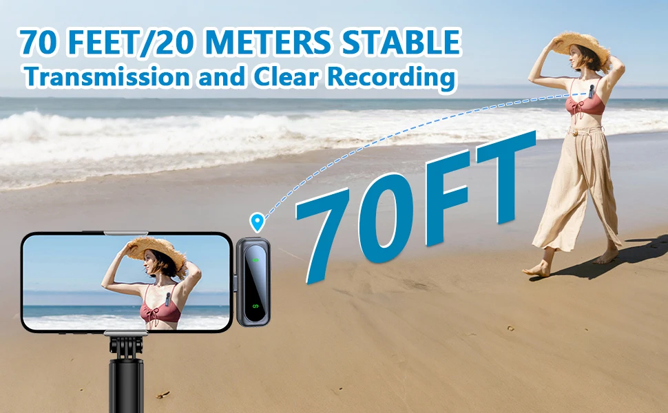 【70-Feet Far Distance Connection】 - Built-in optimized antenna design, enables covering up to 70feet far distance indoor or outdoor stablyWhether you're a beginner or an experienced content creator, this portable wireless lapel mic would be an ideal companion. Its user-friendly design makes it suitable for anyone diving into content creation. Surprise your vlogger, influencer, or content creator friends with this thoughtful gift for their work or entertainment needs