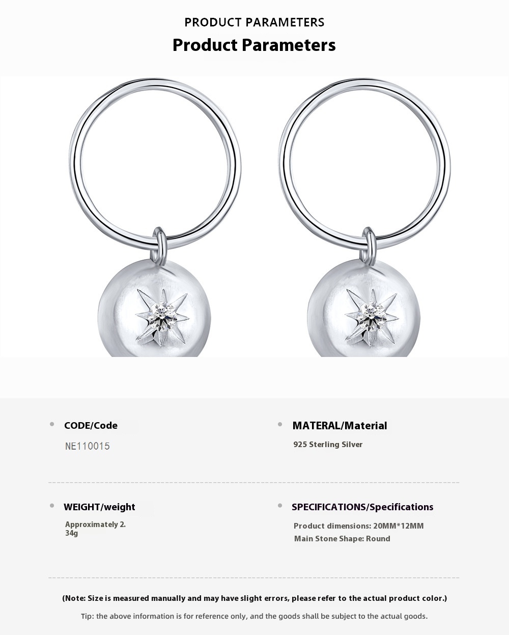 Color: Platinum NE110015-S-W-WH, gold NE110015-S-G-WH