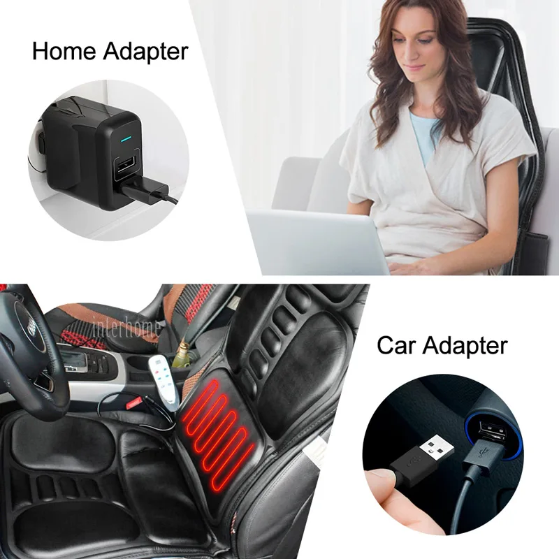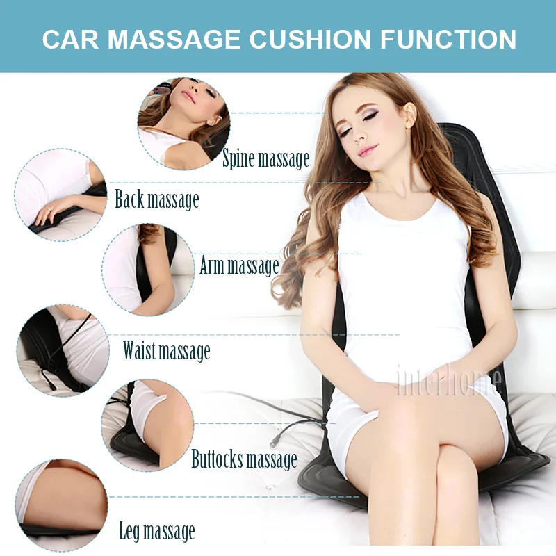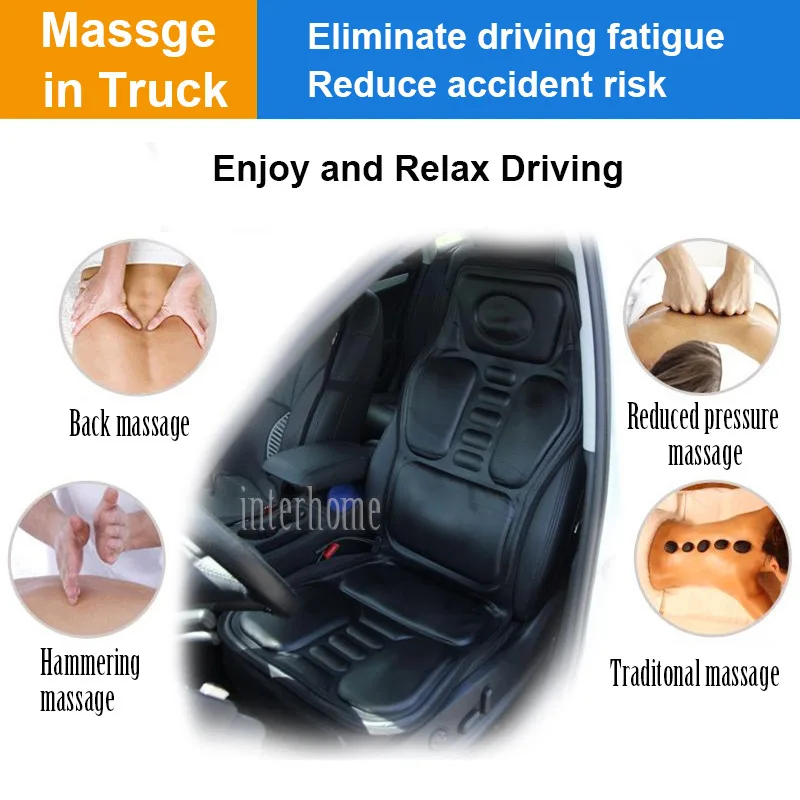 PU Leather Electric Heating Massager Cushion for Car Cargo Truck Home Use 9 Motors Vibration Neck Back Pain Relief Massage Mat