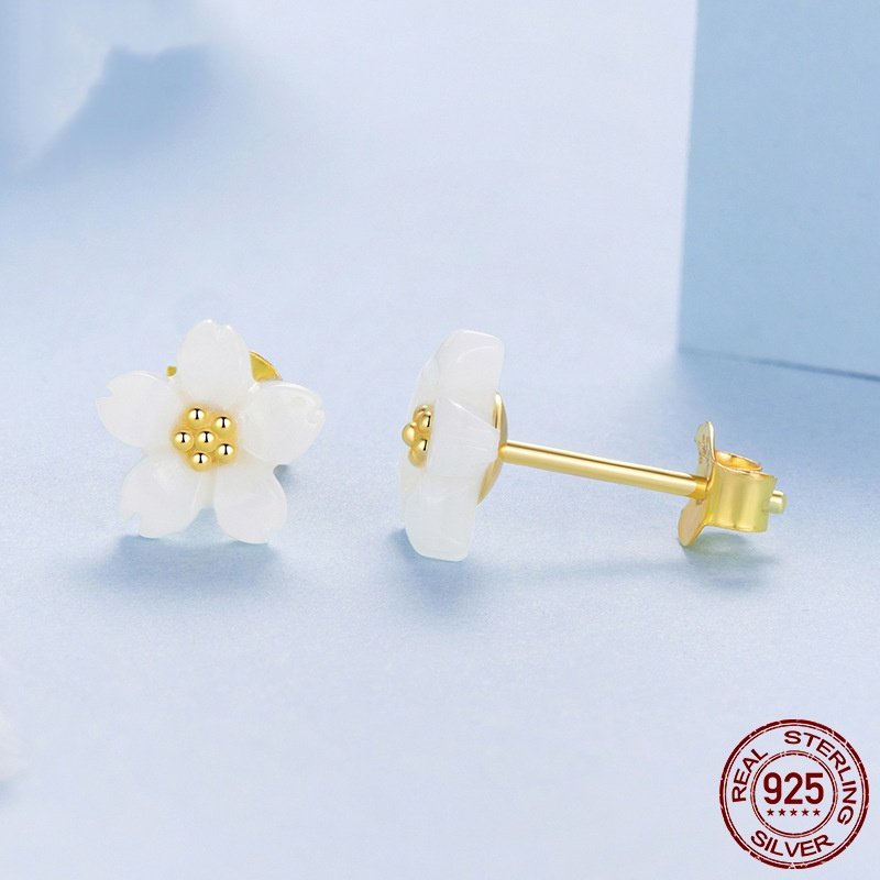 S925 Sterling Silver Cherry White Fritillary Stud Earrings