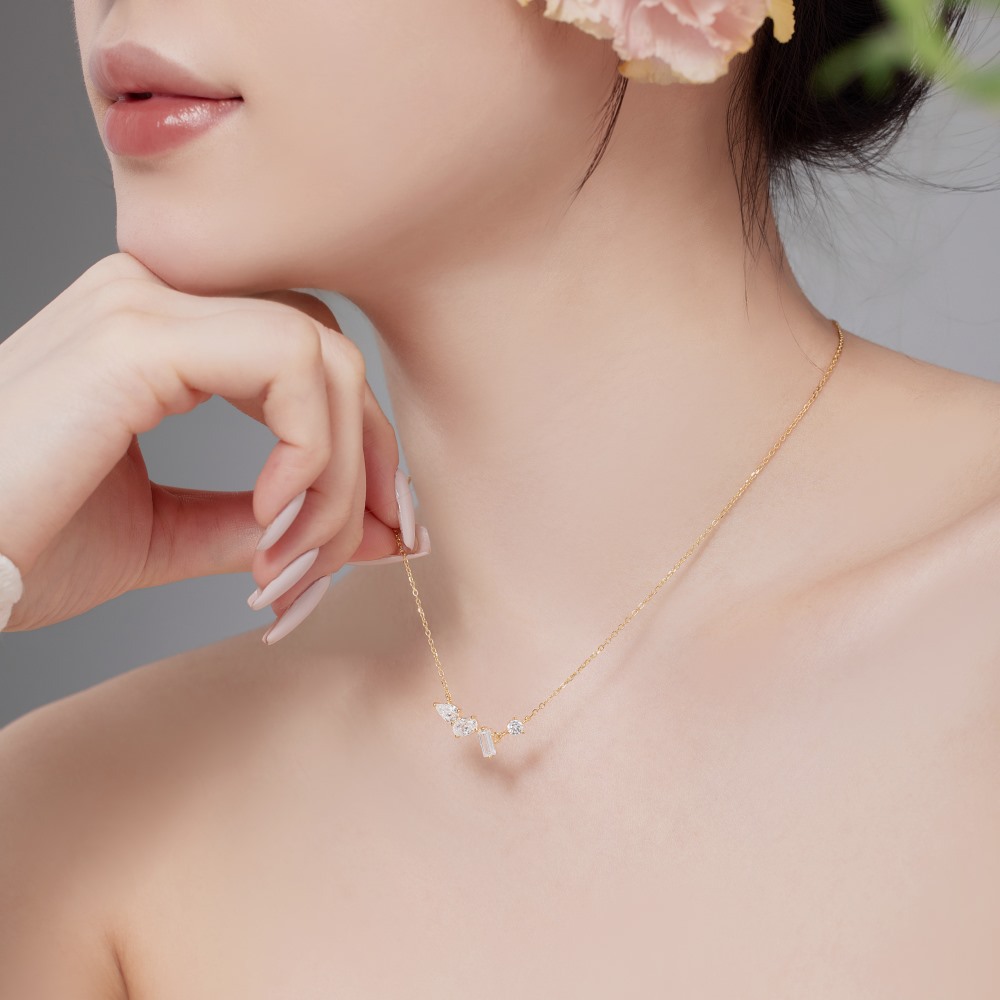 S925 Sterling Silver Necklace Women's Inlaid Zircon Pendant