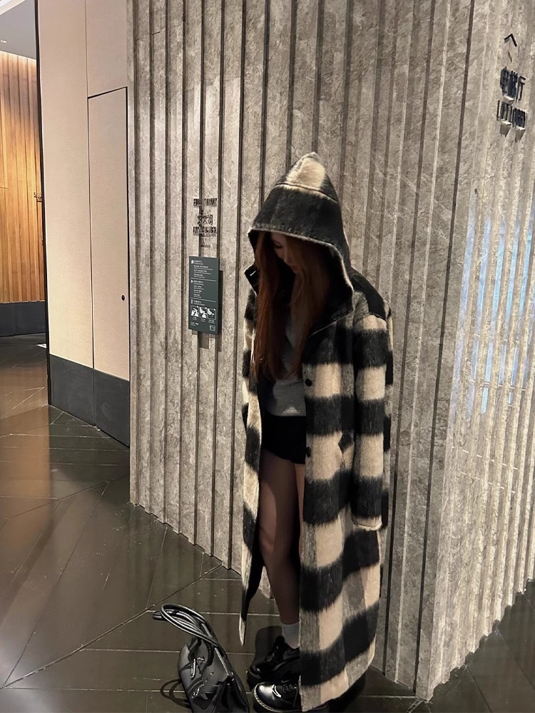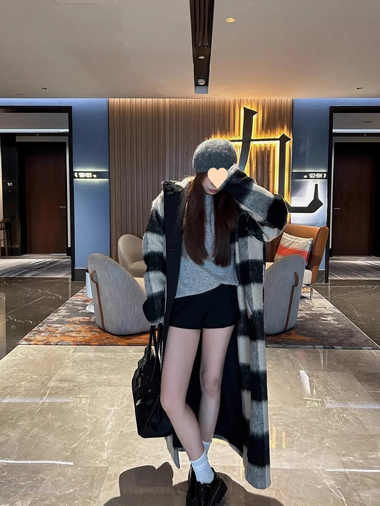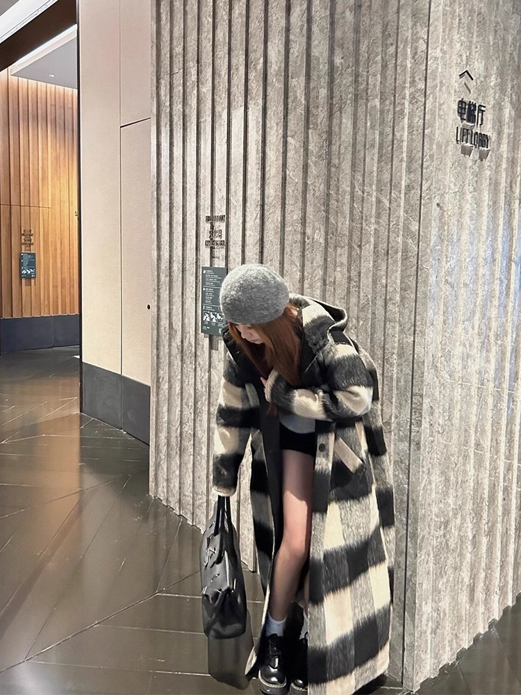 Color: beige black plaid cloak