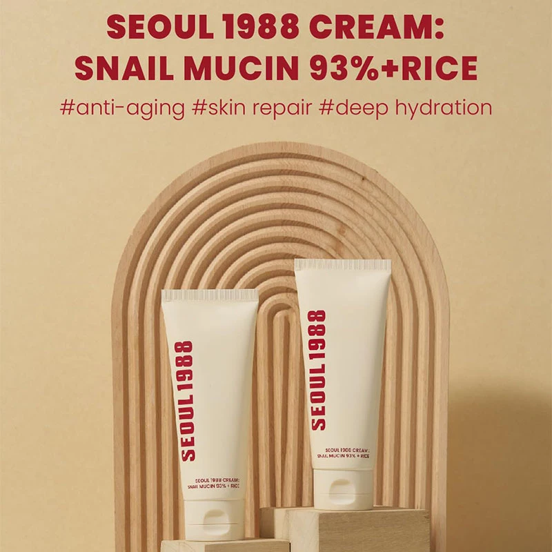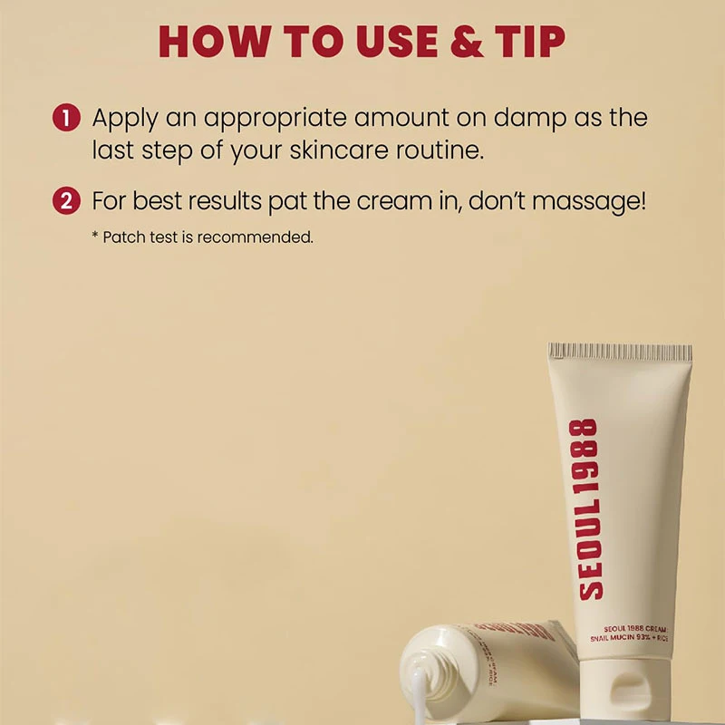 Moisturizing cream enriched with 93% snail mucus filtrate and rice extract to revitalize and renew the skin.