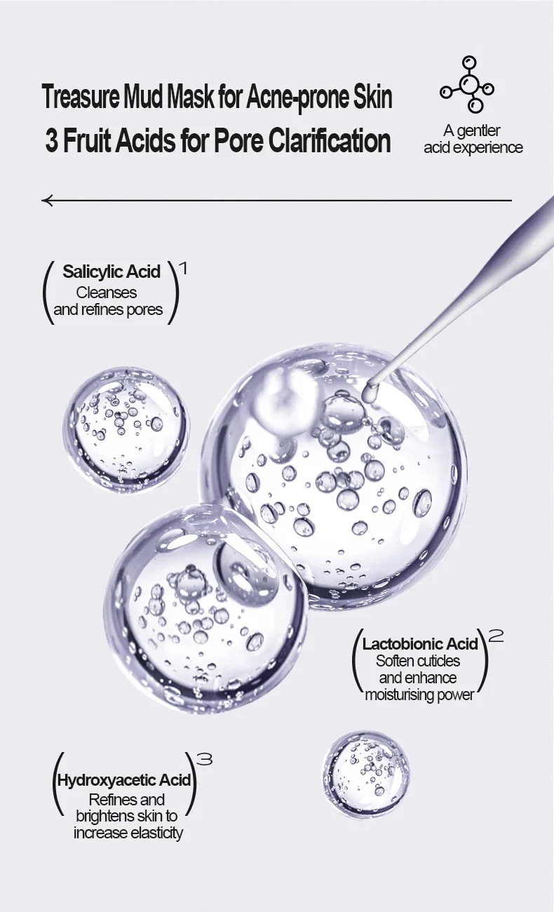 Salicylic Acid Mask-Contains salicylic acid, kaolin, diatomite, volcanic mud, scutellaria baicalensis, sophora flavescens, honeysuckle, glabrous liquorice, dandelion, etc., moisturizing essence, refreshing and moisturizing, absorbing oil and dust
