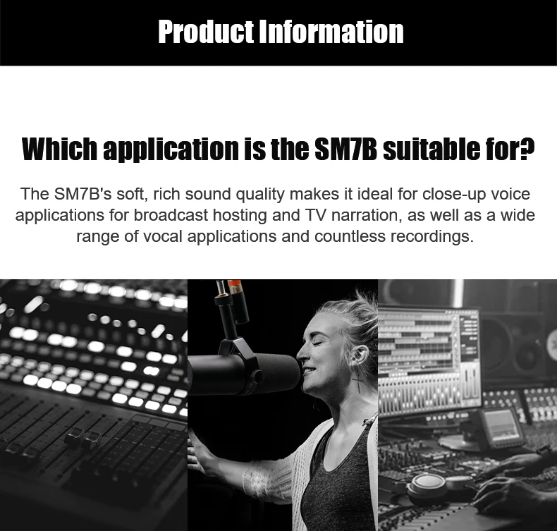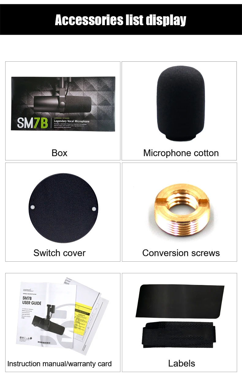 SM7B Cardioid Dynamic Microphone for Studio Recording Podcasting with Smooth Audio Response and  Black Metal Mic