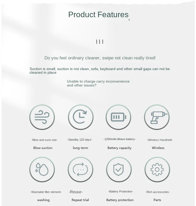 5. Accessories: charging cable, long flat mouth, brush, blow nozzle
