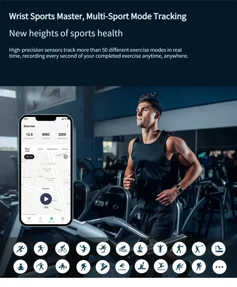 * Multi-sports mode tracking, high-precision sensors track more than 50 different sports modes in real time, and record every second of the exercise you complete anytime, anywhere.