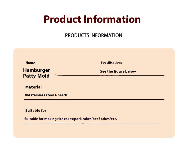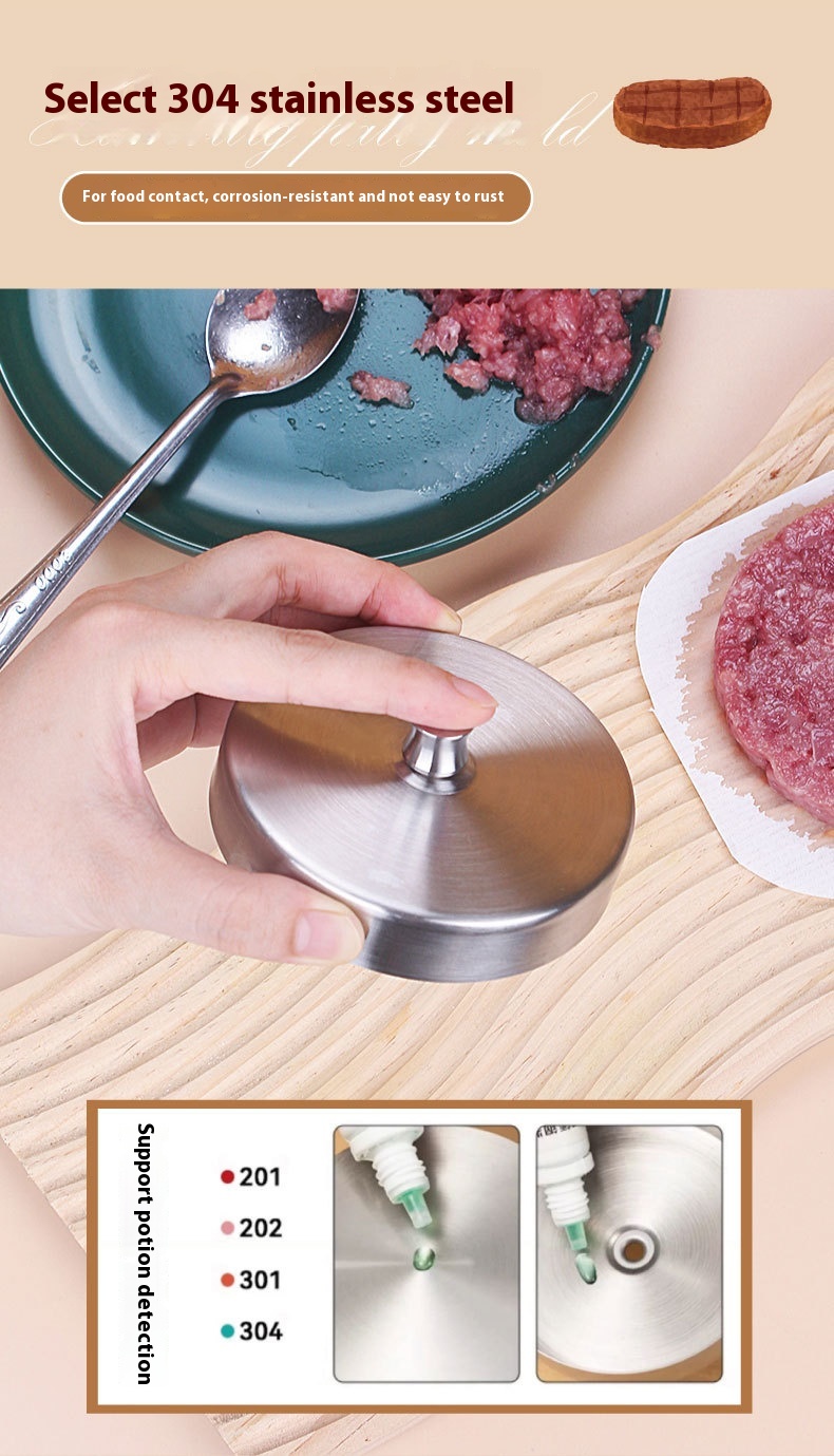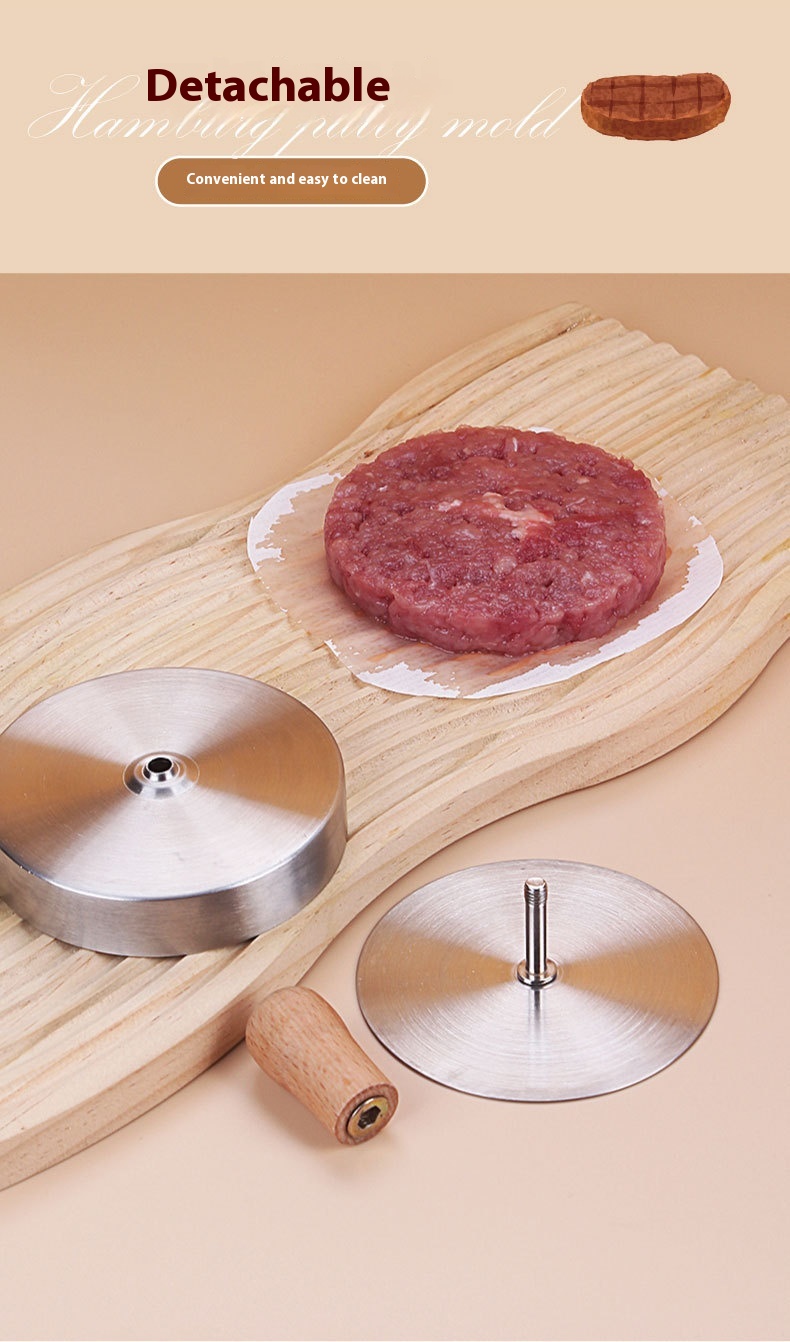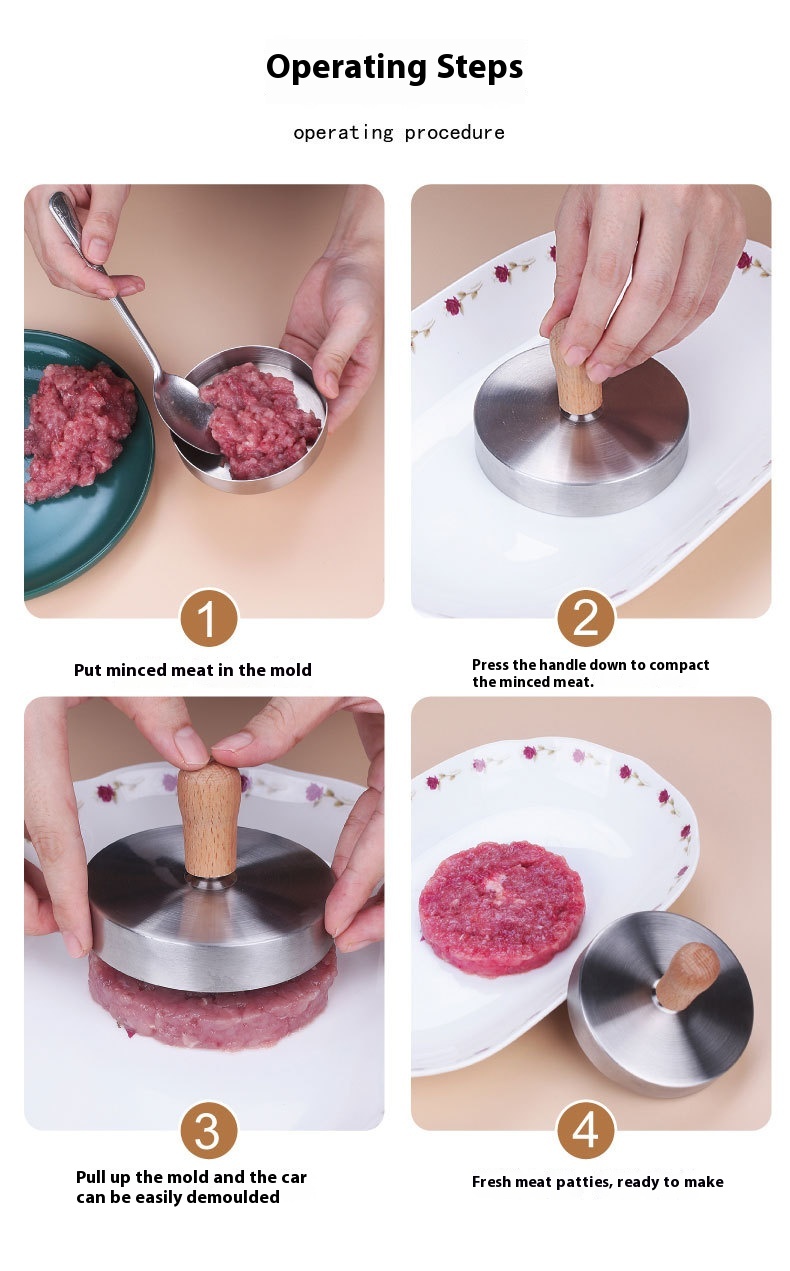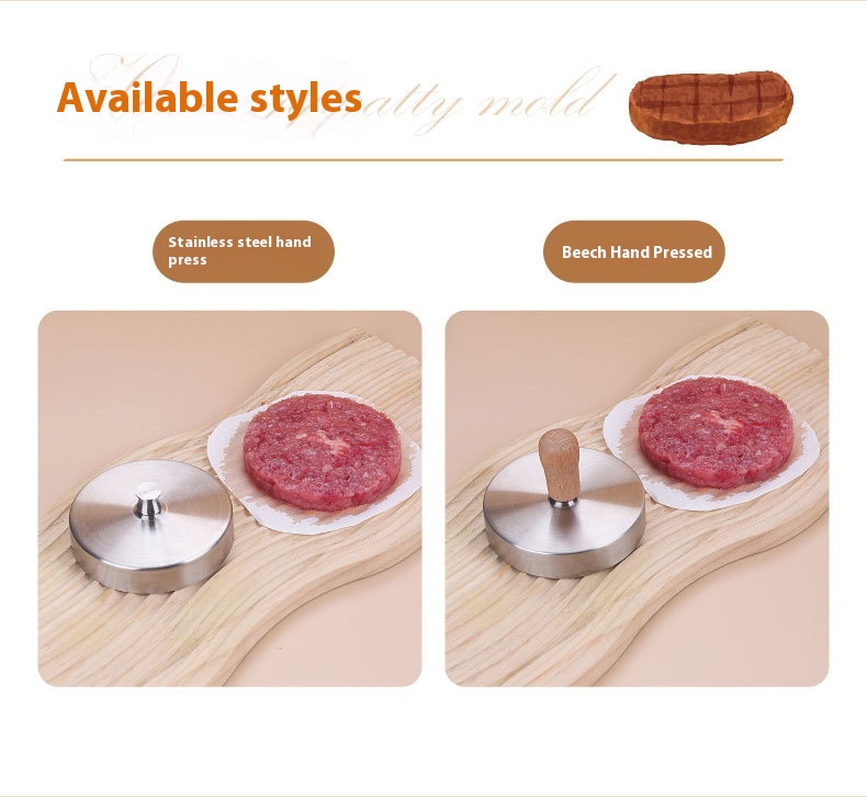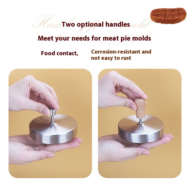 Color: meat cake mold with wooden handle (color box packaging), stainless steel handle meat cake mold (color box packaging)