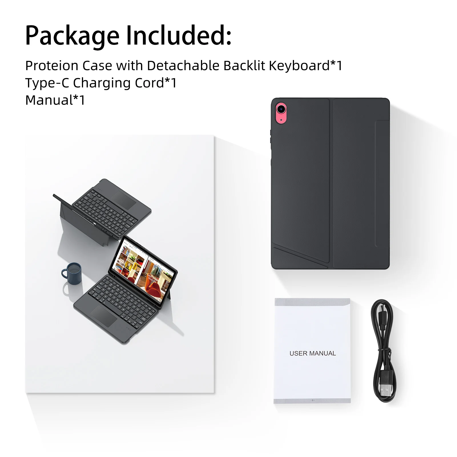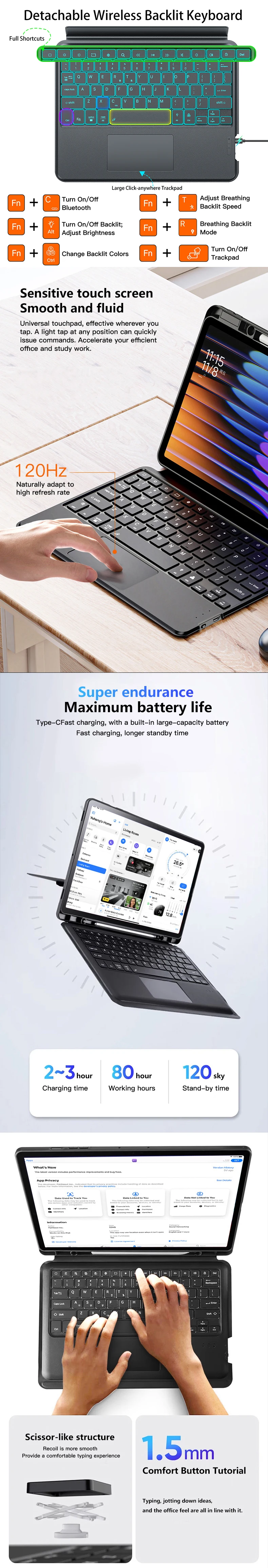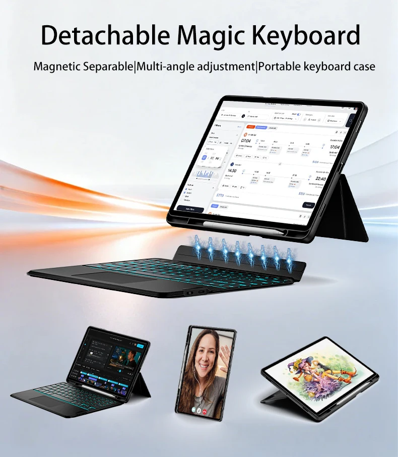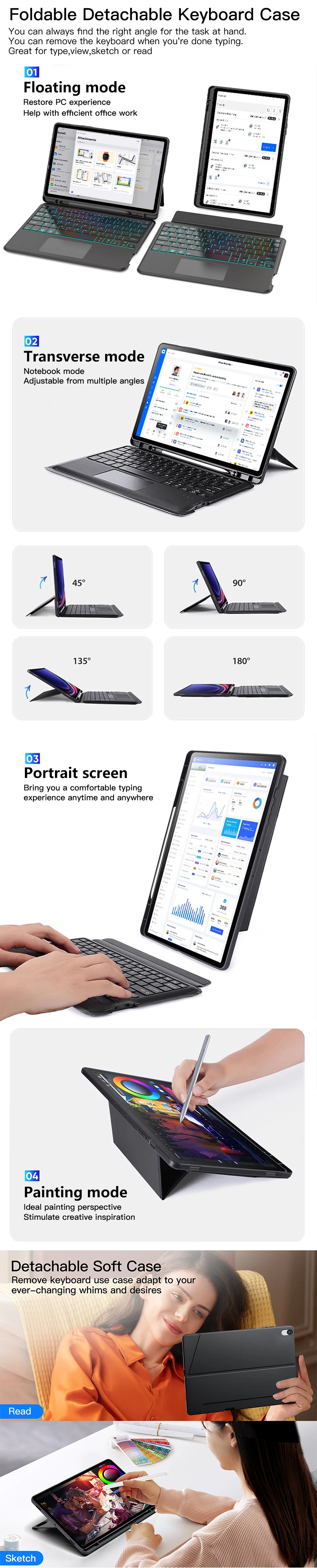 Magnetic detachable design: opens up endless possibilities for this keyboard case, transforming your tablet into an efficient productivity tool with a computer like user experience.