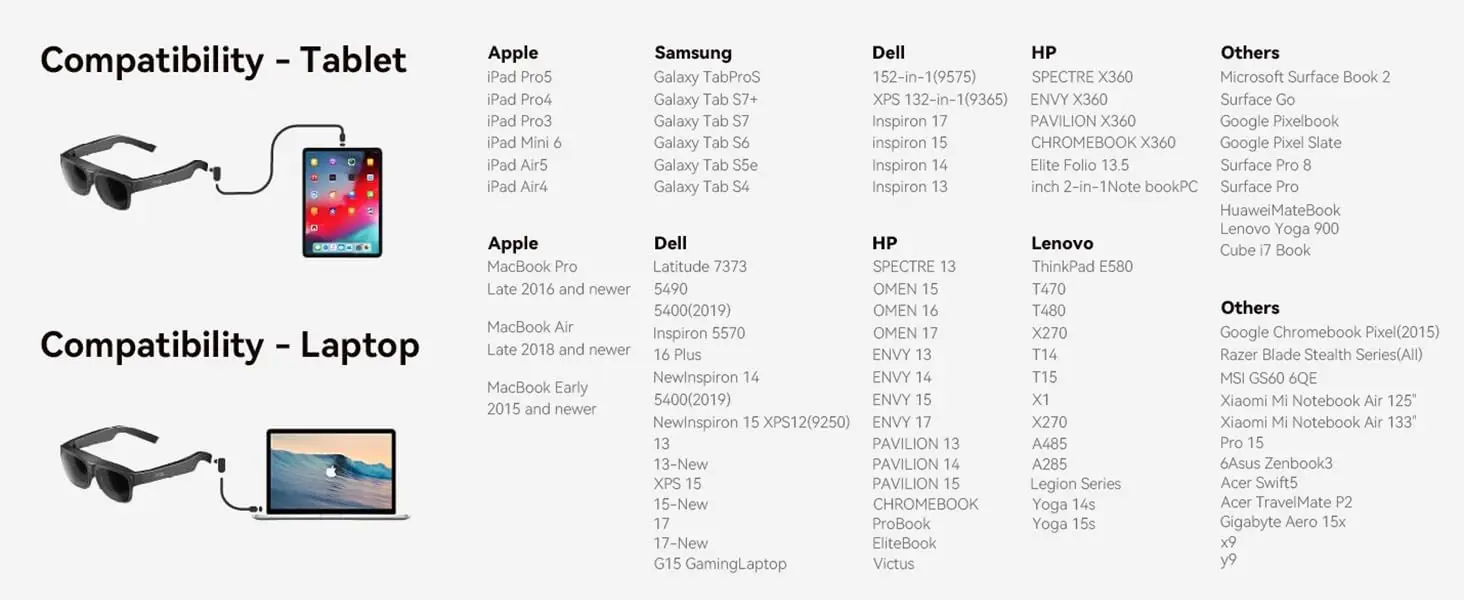 Note: TCL NXTWEAR S+ & RayNeo Air Plus, They have the same configuration and performance