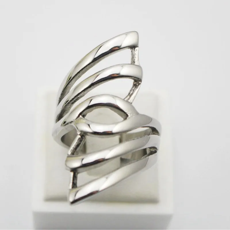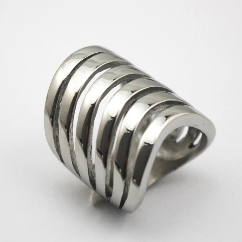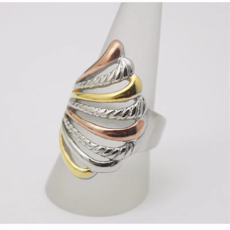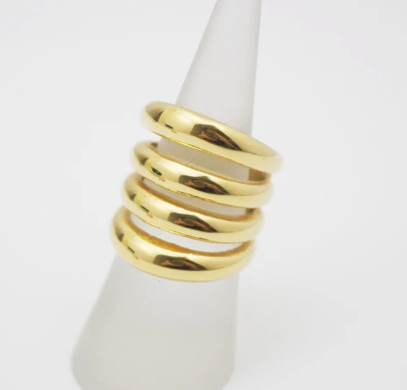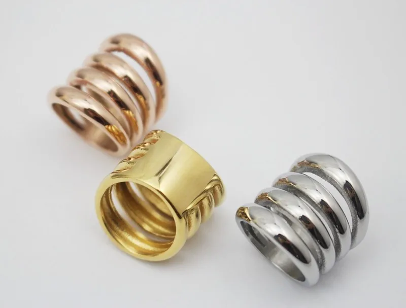 Wide Hollow Stainless Steel Golden Ring Jewelry 4 Layer Striped Rings Women Size 8 6 7 11.5 11 10 5 9