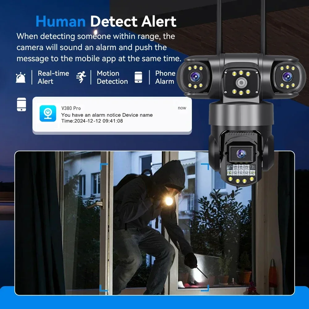 V380 Pro WiFi IP Camera Outdoor 12MP 6K Triple Lenses Triple Screens Security Video Monitor Night Vision Waterproof CCTV Cameras