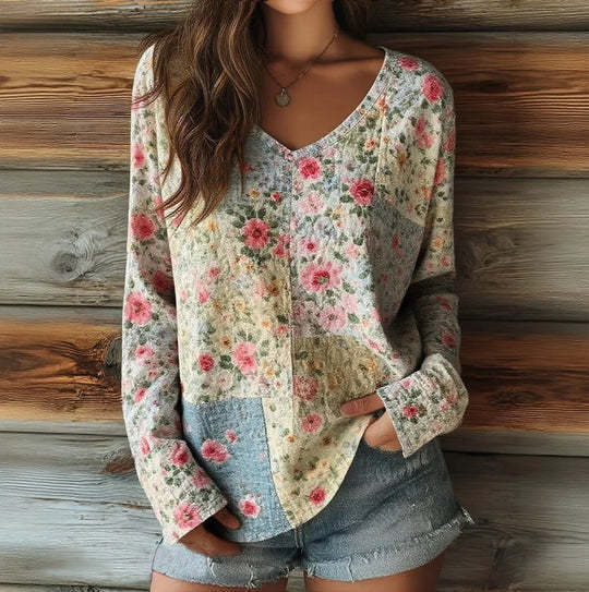 Women's Loose And Stylish Long Sleeves T-shirt Mild Luxury Retro Picture